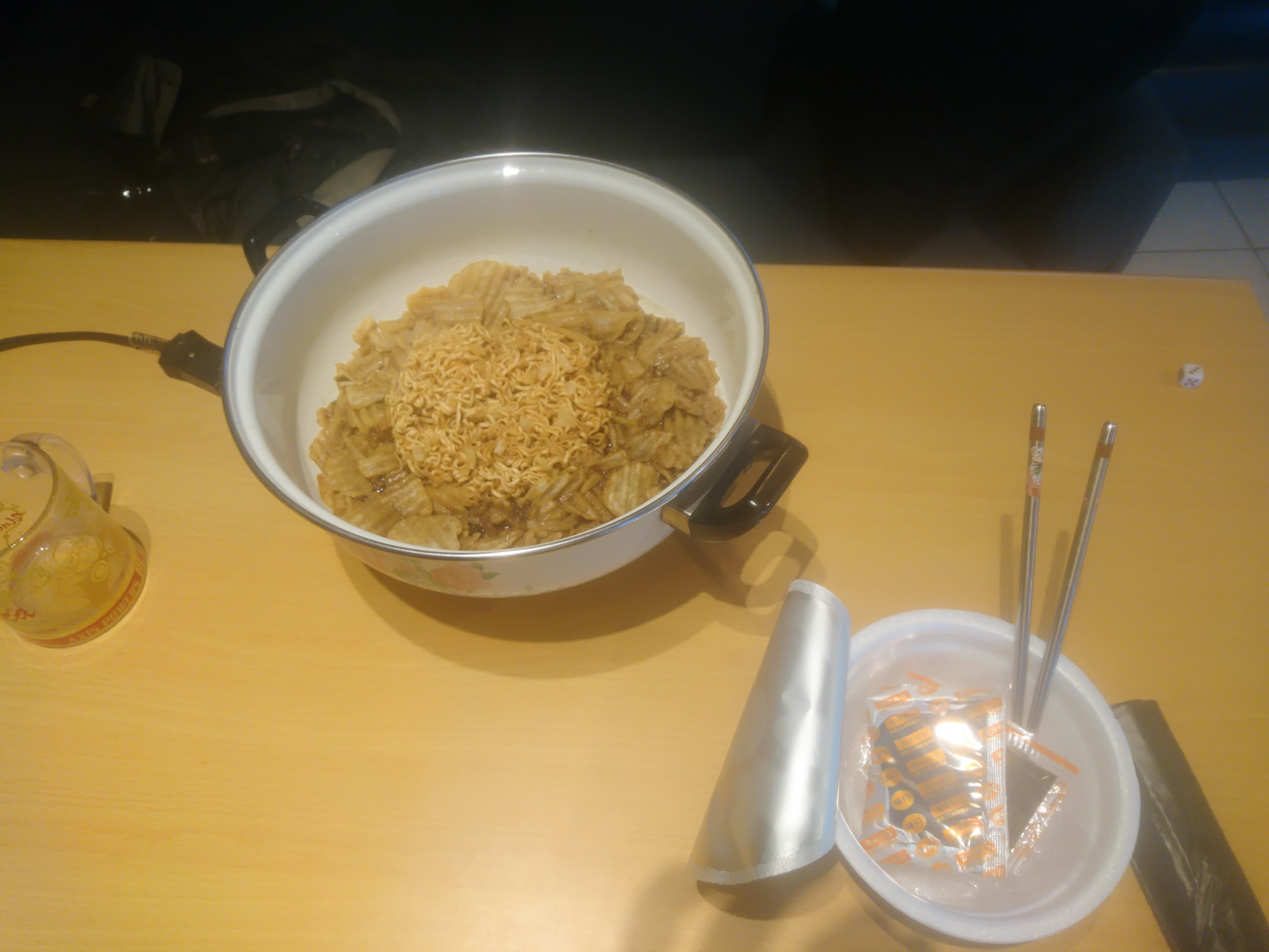1.今天的餐點是牛肉湯泡麵+薯片,怎麼感覺深夜的宵夜開始暗黑了